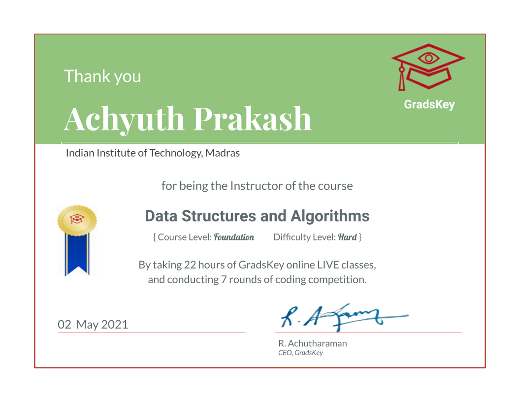 Course Instructor for "DS & Algorithms"