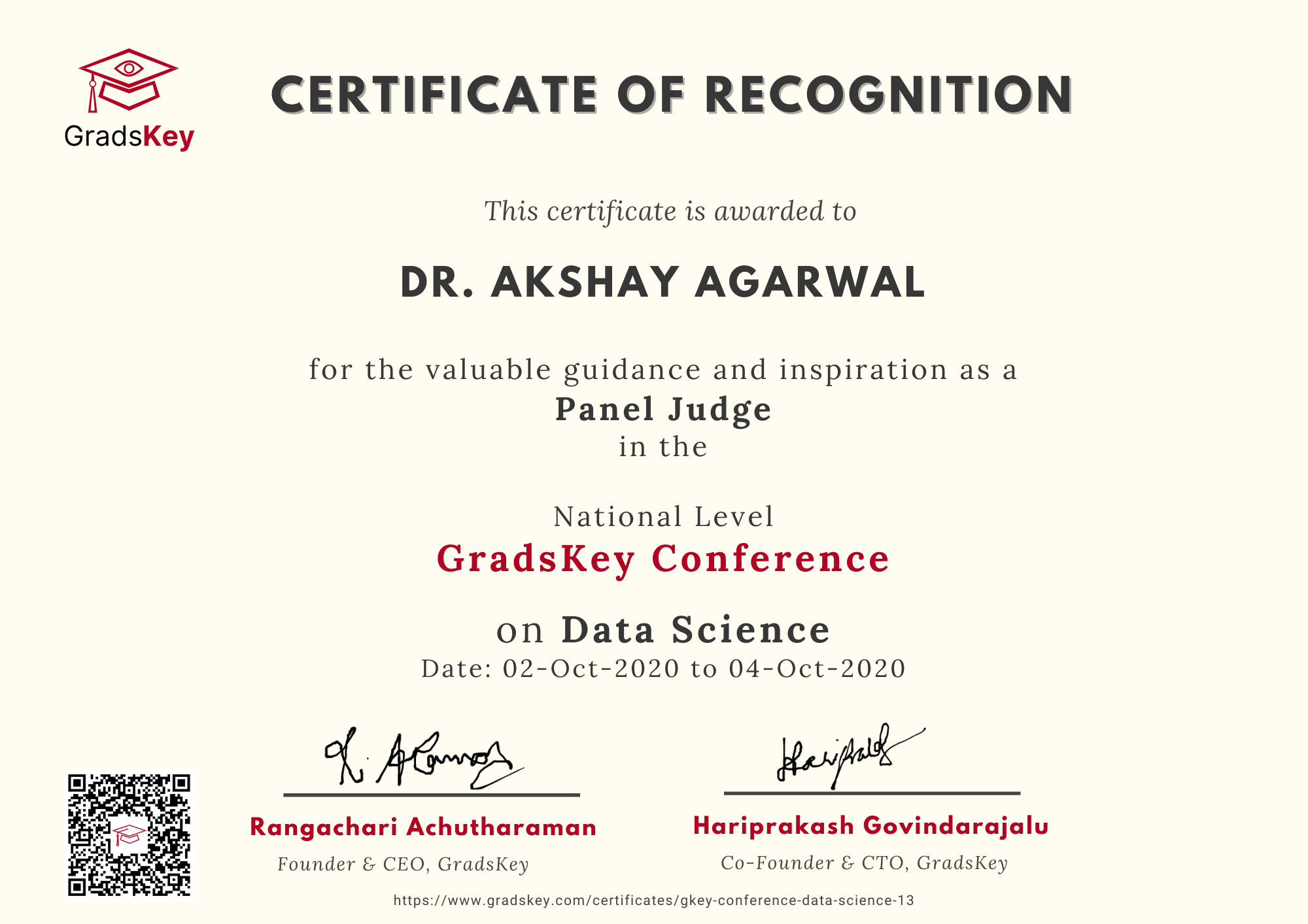 GradsKey Data Science Conference - Panel Judge